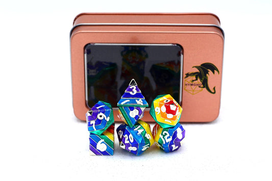 Rainbow Pride solid metal dice set - Silver with White