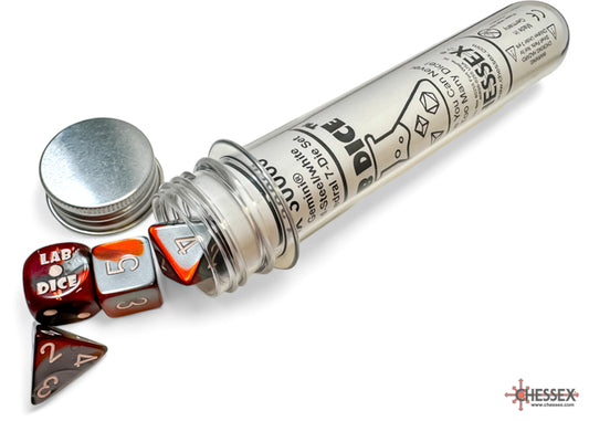 Chessex Dice Set: Lab Dice™: Gemini® Red-Steel/white Polyhedral 7-Dice Set (with bonus die) : CHX30066