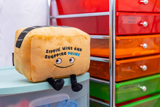 "Sippin' Wine and Shopping Prime" Plush Amazon Box, Holiday, Christmas