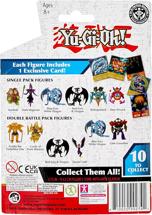 - Single Pack Figures include Kuriboh, Dark Magician, Blue-Eyes White Dragon, Red-Eyes B. Dragon, Reliquished and Time Wizard.