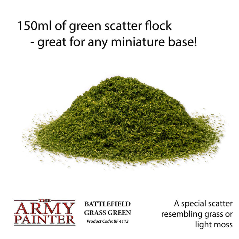 A special scatter resembling grass or light moss. Can be used to cover the entire base or in smaller clumps on top of Brown Battleground. Resembles grass on a miniature base. Use in conjunction with other tufts or basing materials for greater effect.