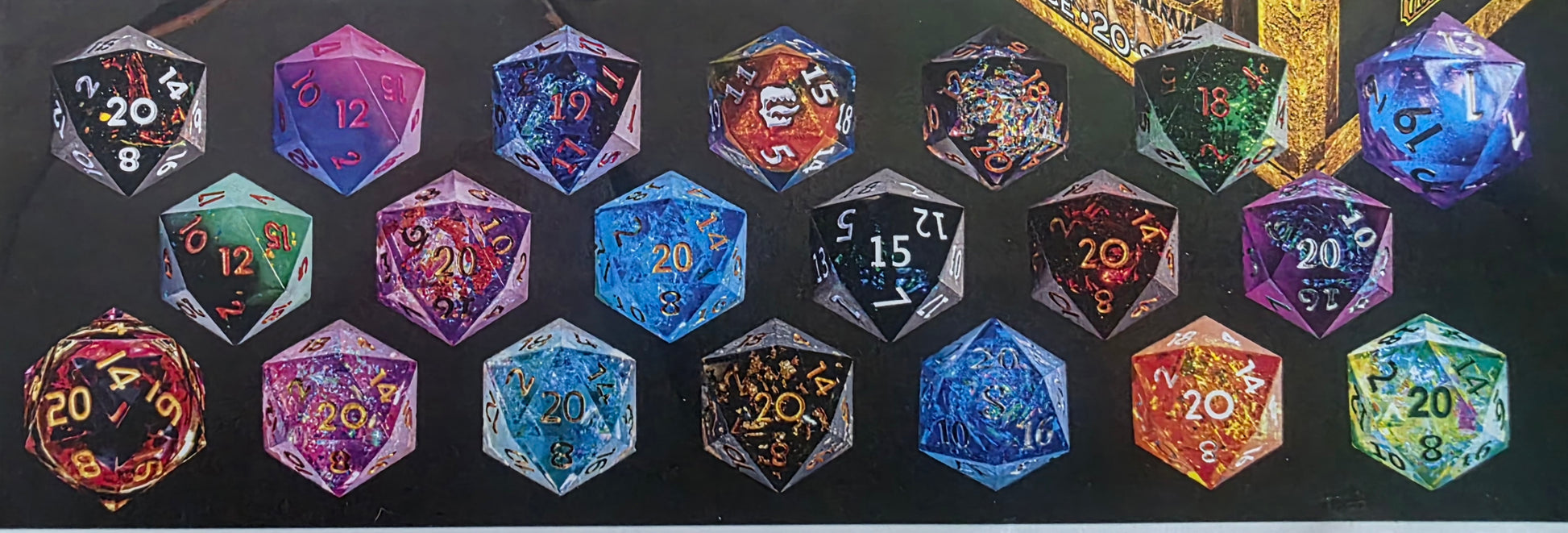 The Mimic Dice Resin Series 1 Blind Box brings majestic hand crafted dice directly to you, with a twist. Each box has 1 random set of 7 RPG dice out of 20 total theme/color options.