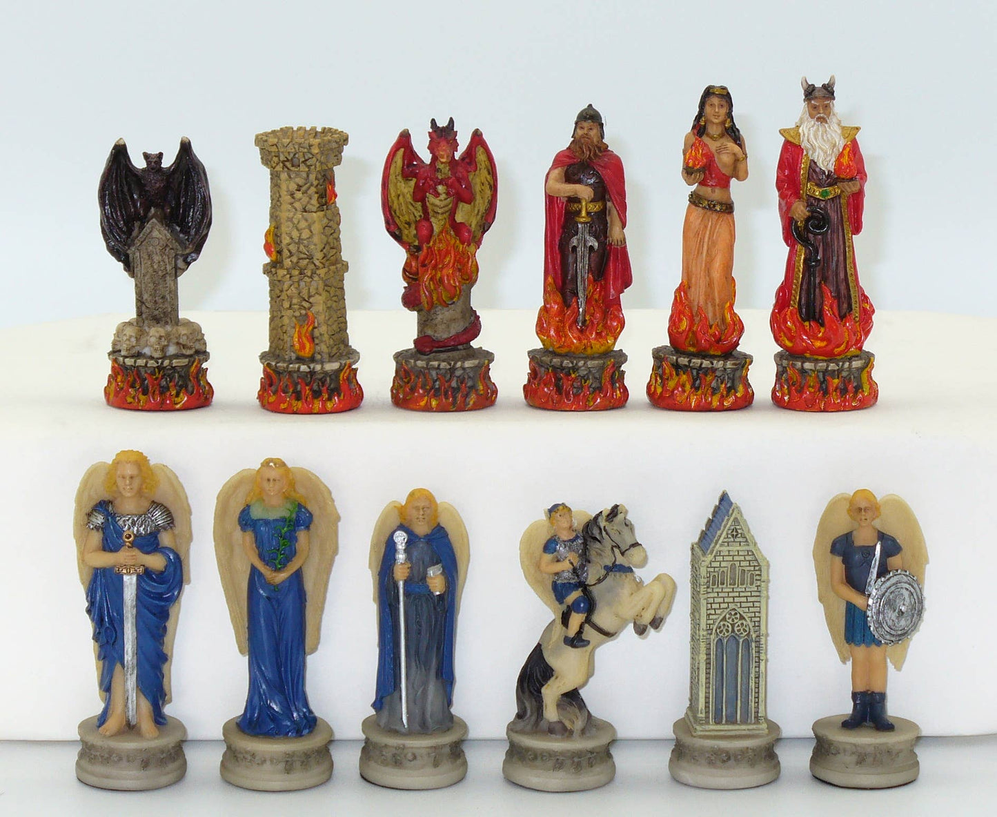 Chessmen - Blue Angels & Red Devils Painted Chessmen