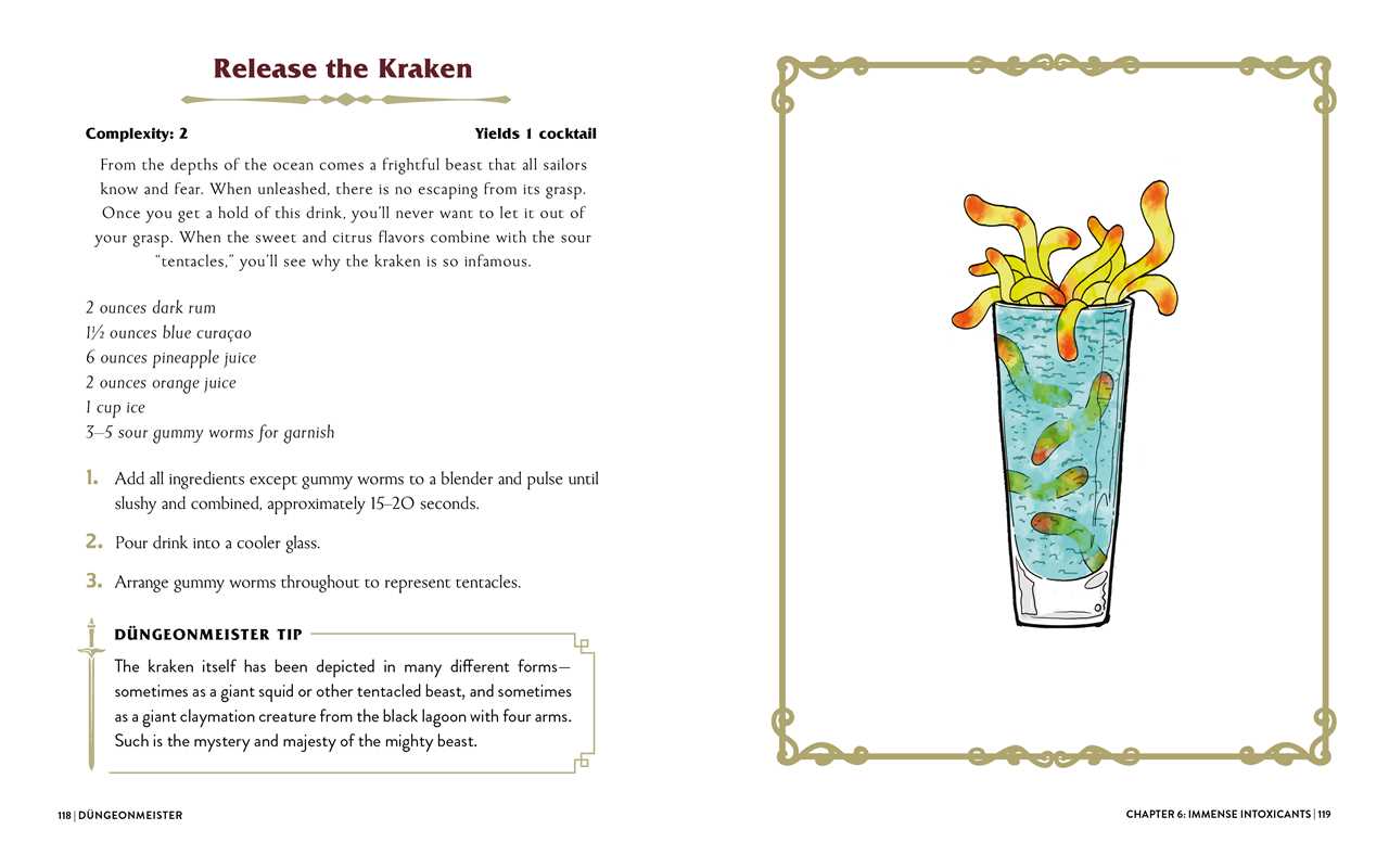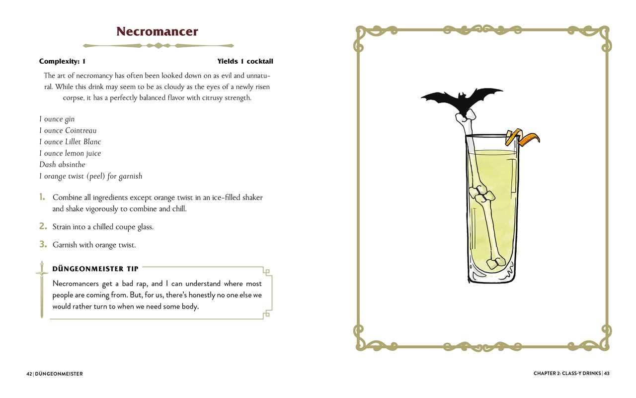 Celebrate your campaigns and conquests with these 75 fun, RPG-inspired cocktail recipes your whole gaming group will love! Make your next gaming adventure even more fun with this collection of 75 RPG-inspired cocktails! Featuring fantasy-themed libations from the boozy Dragon the Beach and a Potion of Strength to a sneaky Stealth Check shot and a Never Split the Party Punch, you’ll keep spirits high and your friends happy during your next dungeon-crawling tabletop adventure. Complete with easy-to-follow, accessible instructions, Düngeonmeister also includes funny jokes and hilarious asides that will take your campaign (or your next gathering) to the next level!