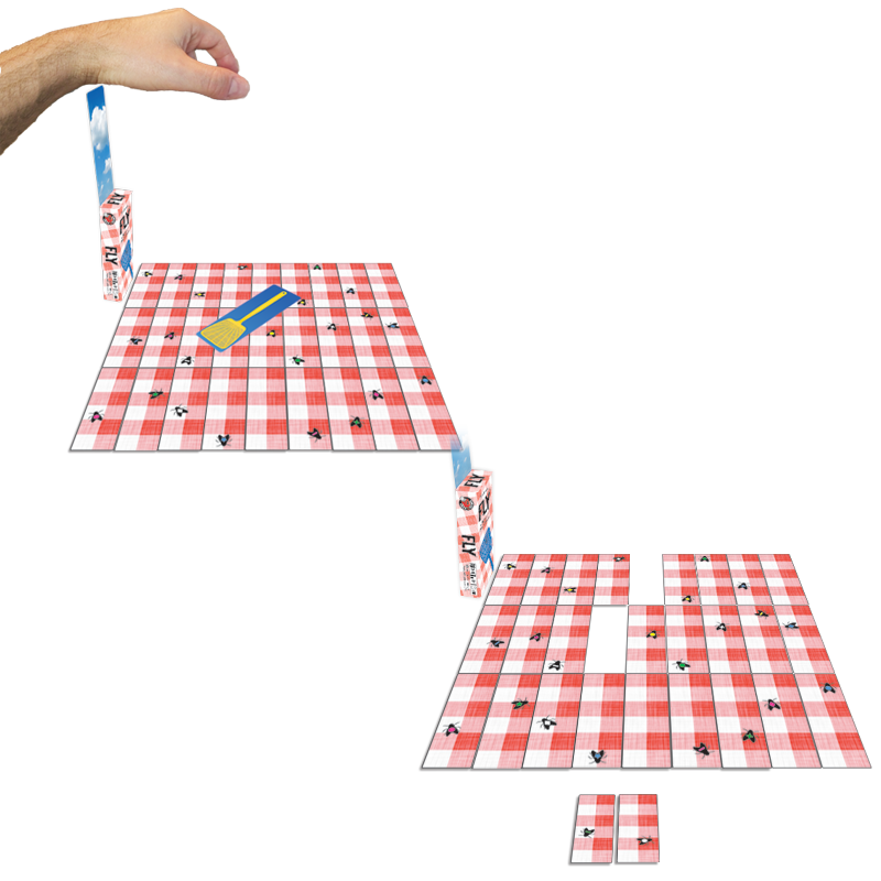 Get swattin’ in this exciting dexterity, set-collecting game! Players take turns dropping the fly swatter card on the table to swat flies with like colors and symbols. You'll need at least 3 of the same color or symbol in order for a fly to count. Perfect for portable family FUN.