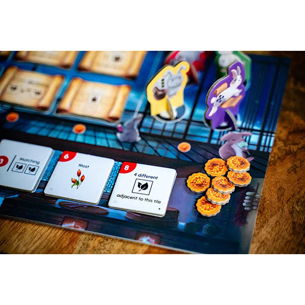 In Moon Bunny, you take on the role of a master bunny alchemist inspired by folklore. Your task is to guide your bunny assistants on a journey through the lunar landscape to gather rare Asian herbs. Each assistant has their own unique hopping movement pattern, and it is up to you to choose the right ones for the task at hand. Once you have collected the necessary ingredients, bring them back to your workshop and arrange them in a specific pattern to brew the ultimate elixir of life. The bunny who is able to gift this elixir to the world, bringing health and happiness to all, wins the game!
