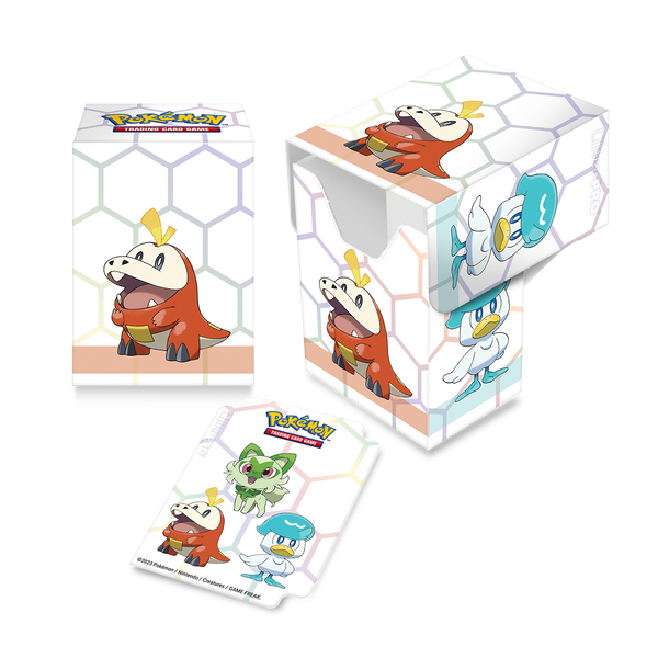 This special bundle includes one playmat, 65 Deck Protector® sleeves, and one Deck Box® with a matching deck divider. All accessories are packaged in a themed card storage box which holds up to 500 sleeved cards. Accessories feature popular starter Pokémon Sprigatito, Fuecoco, and Quaxly. This holiday bundle makes an excellent gift and is a must-have for any Pokémon trainer or collector.
