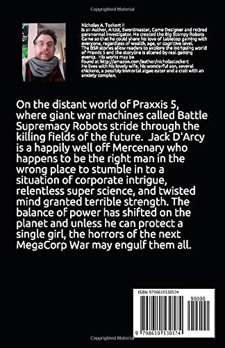On the distant world of Praxxis 5, where giant war machines called Battle Supremacy Robots stride through the killing fields of the future. Jack D'Arcy is a happily well off Mercenary who happens to be the right man in the wrong place to stumble in to a situation of corporate intrigue, relentless super science, and twisted mind granted terrible strength. The balance of power has shifted on the planet and unless he can protect a single girl, the horrors of the next MegaCorp War may engulf them all.