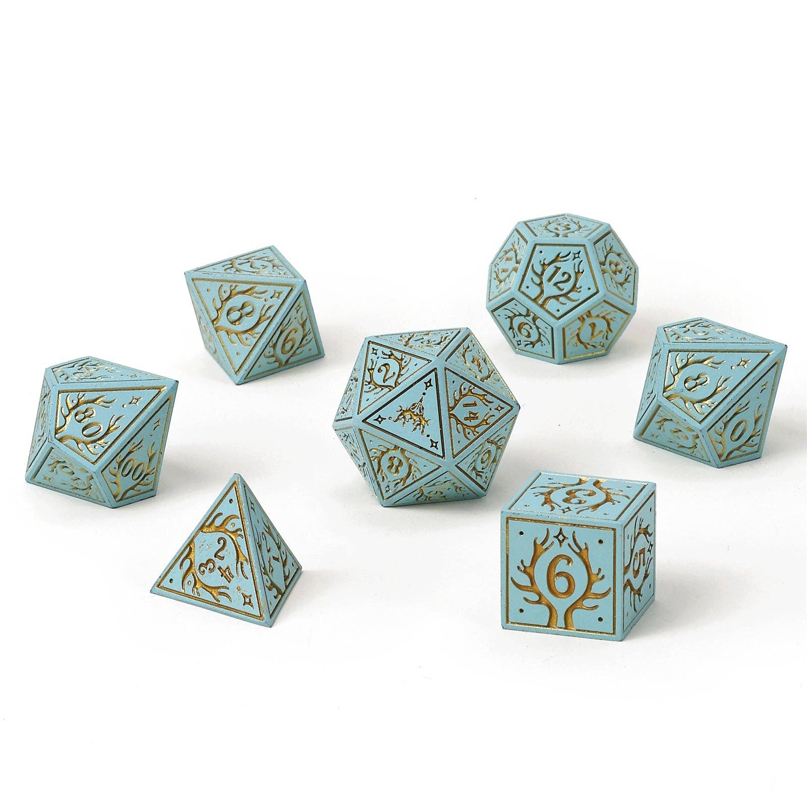Solid Metal Druid RPG Dice Set - Pale Cyan w/Gold