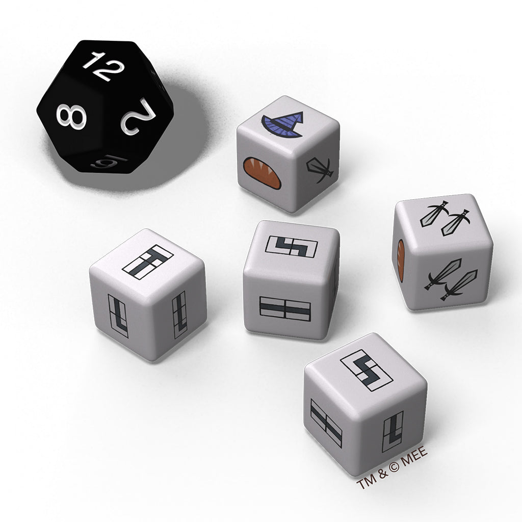 DICE DRAFTING MECHANIC: Collect resources, overcome obstacles, and make tactical decisions using 5 six-sided dice and 1 twelve-sided die to guide Bilbo through his journey.