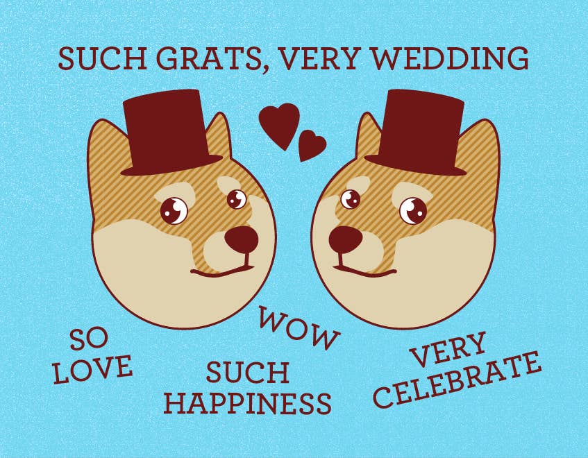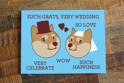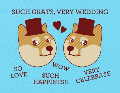 Wow, Such Grats, Very Wedding. Compare the future Mr. & Mrs. to the adorable round-headed shibe doge with this funny card.