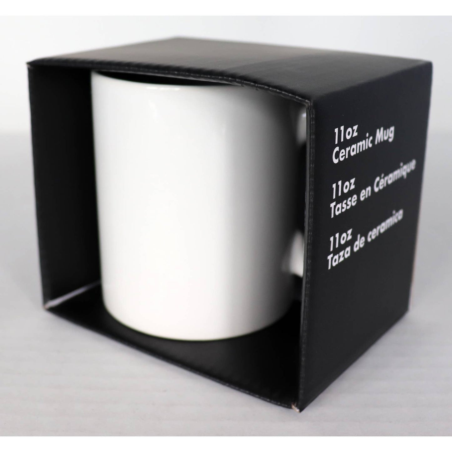 11 ounce dishwasher and microwave safe ceramic mug.